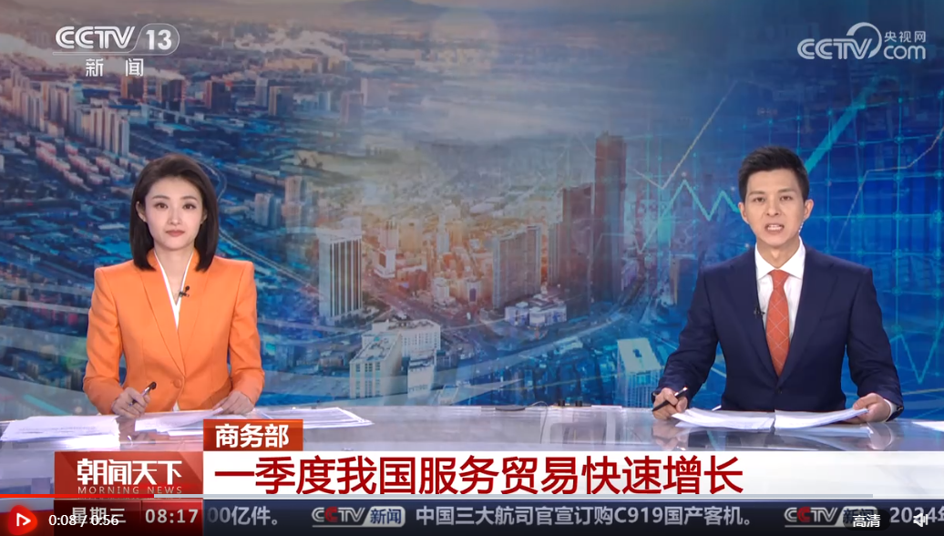 商務部4月30日公布的數據顯示,2024年一季度,我國服務進出口總額18167.4億元人民幣,同比增長14.7%。