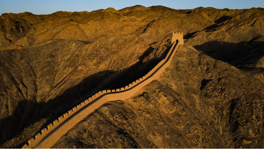 甘肅省嘉峪關(guān)市拍攝的懸壁長城(無人機(jī)照片)。新華社記者 陳鐘昊 攝