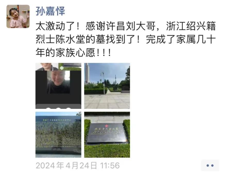 隨后,孫嘉懌聯(lián)系了許昌當?shù)氐闹驹刚?,在烈士陵園內,他們找到了陳水堂烈士的名字。從接到求助到完成,前后不到24小時。然而,在孫嘉懌經歷的案例中,這樣的其實是極少數(shù)。