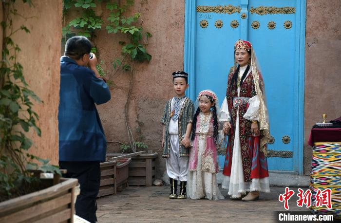5月4日,游客帶著孩子在喀什古城旅拍。中新網(wǎng)記者 孫亭文 攝