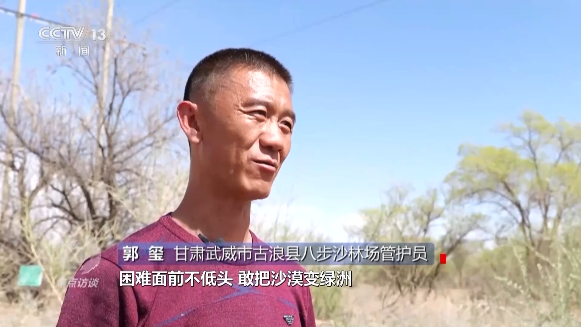 甘肅武威市古浪縣八步沙林場(chǎng)管護(hù)員 郭璽:總書記跟我說(shuō),困難面前不低頭,敢把沙漠變綠洲。我們要一代一代傳承下去,我爺爺他們幾十年種下的樹(shù)不能到我們手里死掉。