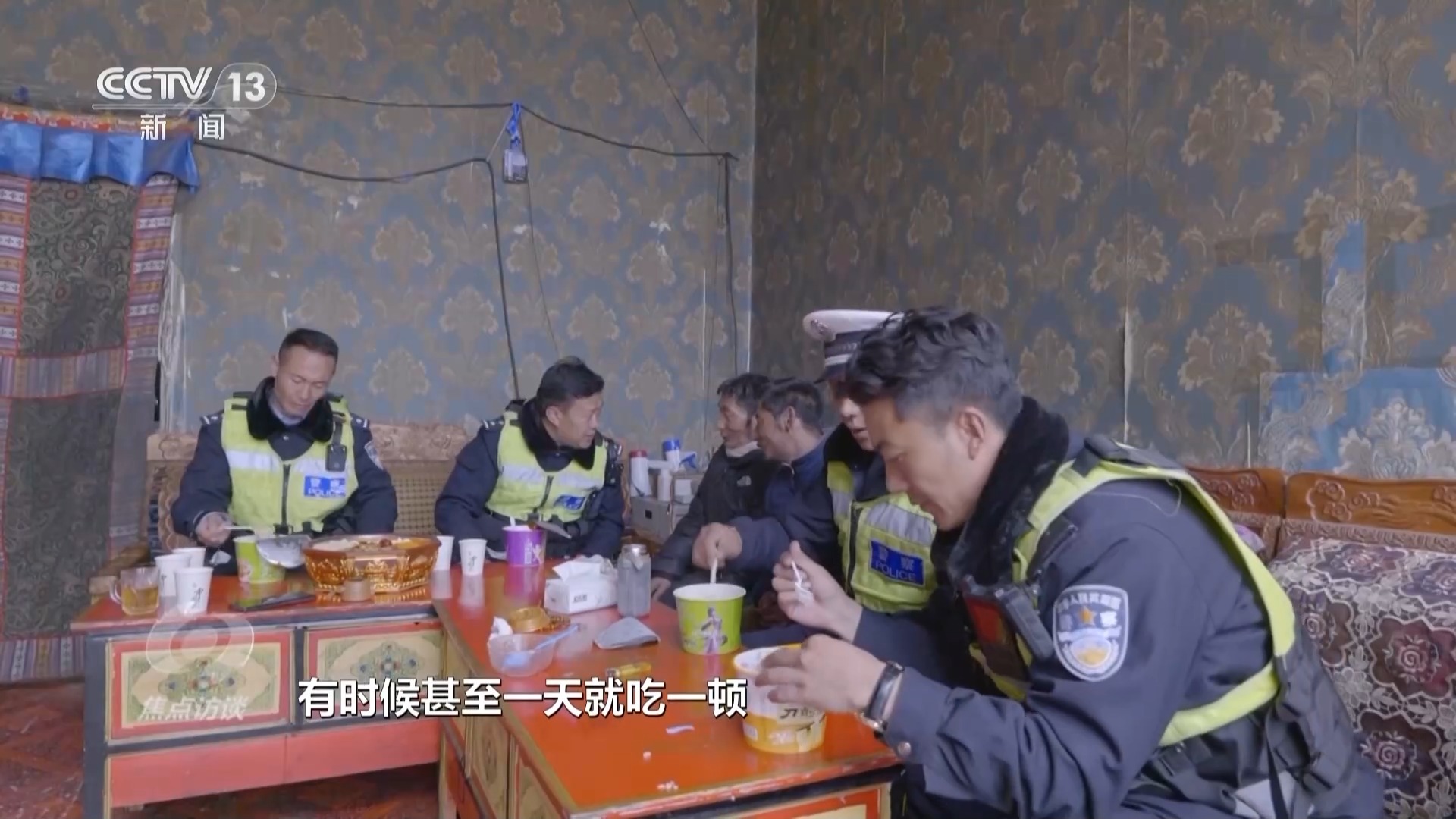 西藏那曲市安多縣公安局交警大隊(duì)大隊(duì)長(zhǎng) 其美永忠:身體是絕對(duì)有影響的,腸胃方面主要是我們吃飯沒(méi)規(guī)律,有時(shí)候甚至一天就吃一頓。從來(lái)沒(méi)有一個(gè)人說(shuō)過(guò)因個(gè)人的原因或者家庭的原因要下山,我們隊(duì)伍都是一起上山、一起下山的這種精神。