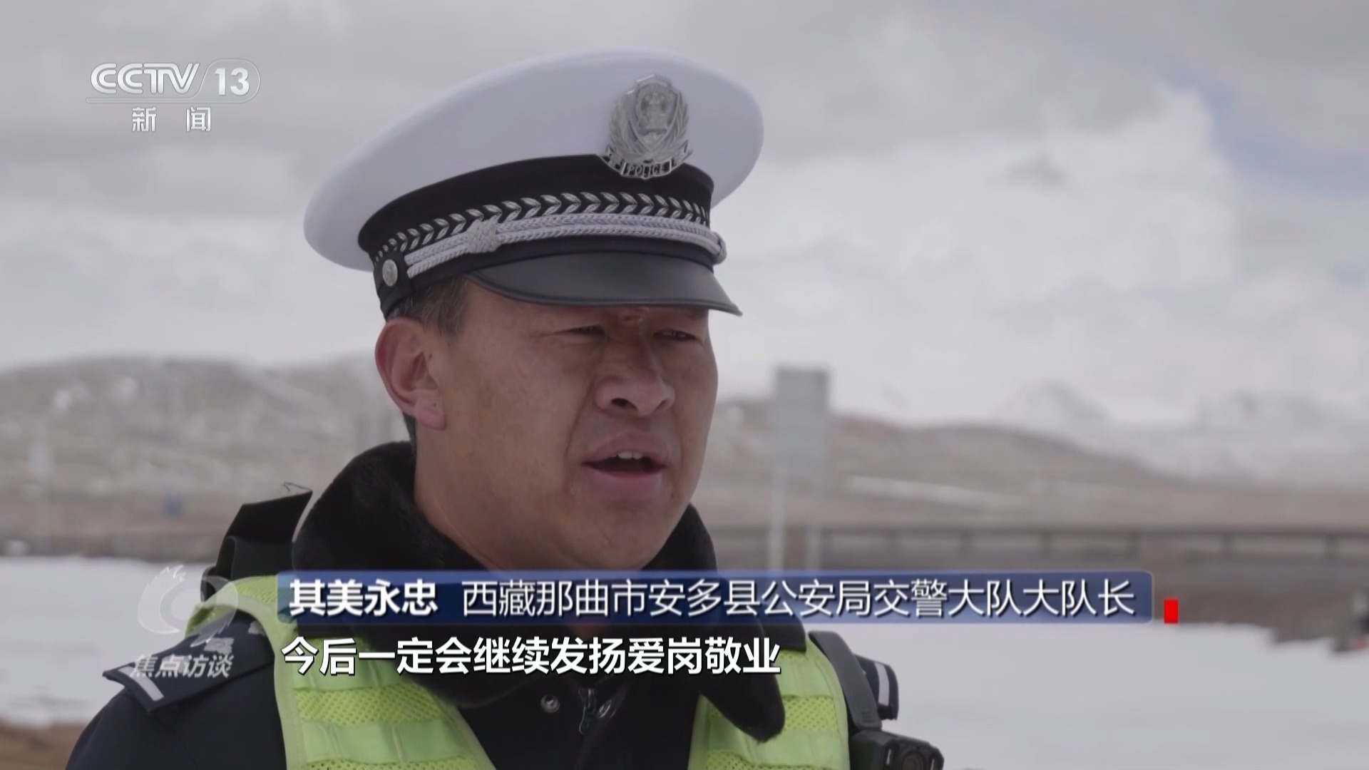西藏那曲市安多縣公安局交警大隊(duì)大隊(duì)長(zhǎng) 其美永忠:這個(gè)榮譽(yù)不是我個(gè)人的,是我們大隊(duì)的榮譽(yù)。今后一定會(huì)繼續(xù)發(fā)揚(yáng)愛(ài)崗敬業(yè)、艱苦奮斗、甘于奉獻(xiàn),把群眾服務(wù)好,把“天路”守護(hù)好。