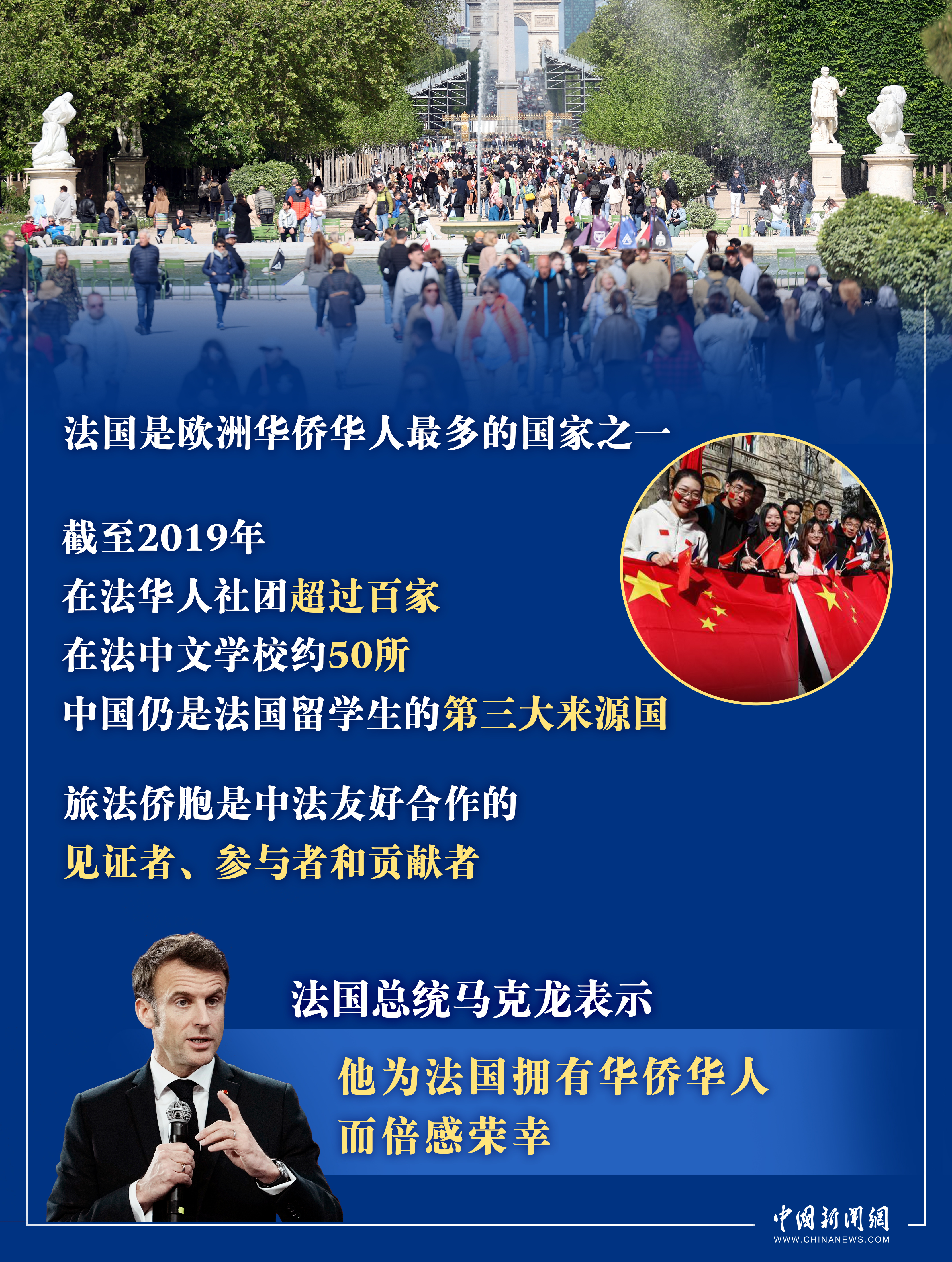法國(guó)華僑華人會(huì)主席任俐敏表示,馬克龍總統(tǒng)曾到我們的“娘家”去夸贊我們,這很值得我們自豪。