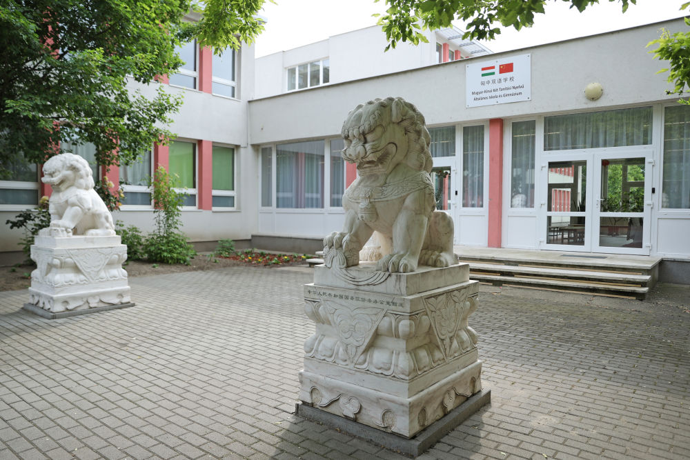 這是匈中雙語學(xué)校校門(2024年5月3日攝)。