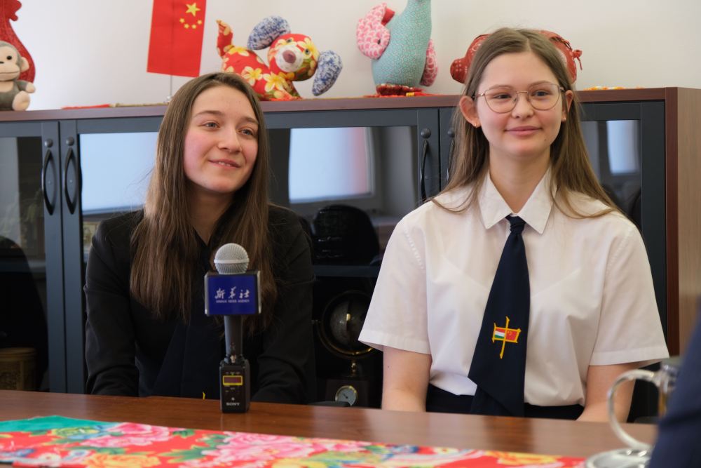 匈中雙語學(xué)校學(xué)生胡靈月(左)和宋智孝在匈牙利首都布達(dá)佩斯接受新華社記者采訪(2023年2月7日攝)。