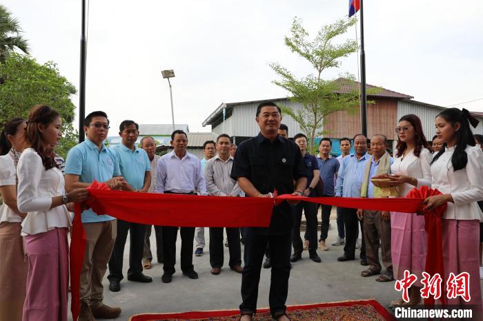 當(dāng)?shù)貢r(shí)間5月12日,柬埔寨民間社會(huì)組織聯(lián)盟論壇主席蓋里維希為新落成的村民中心剪彩。中新社記者 楊強(qiáng) 攝