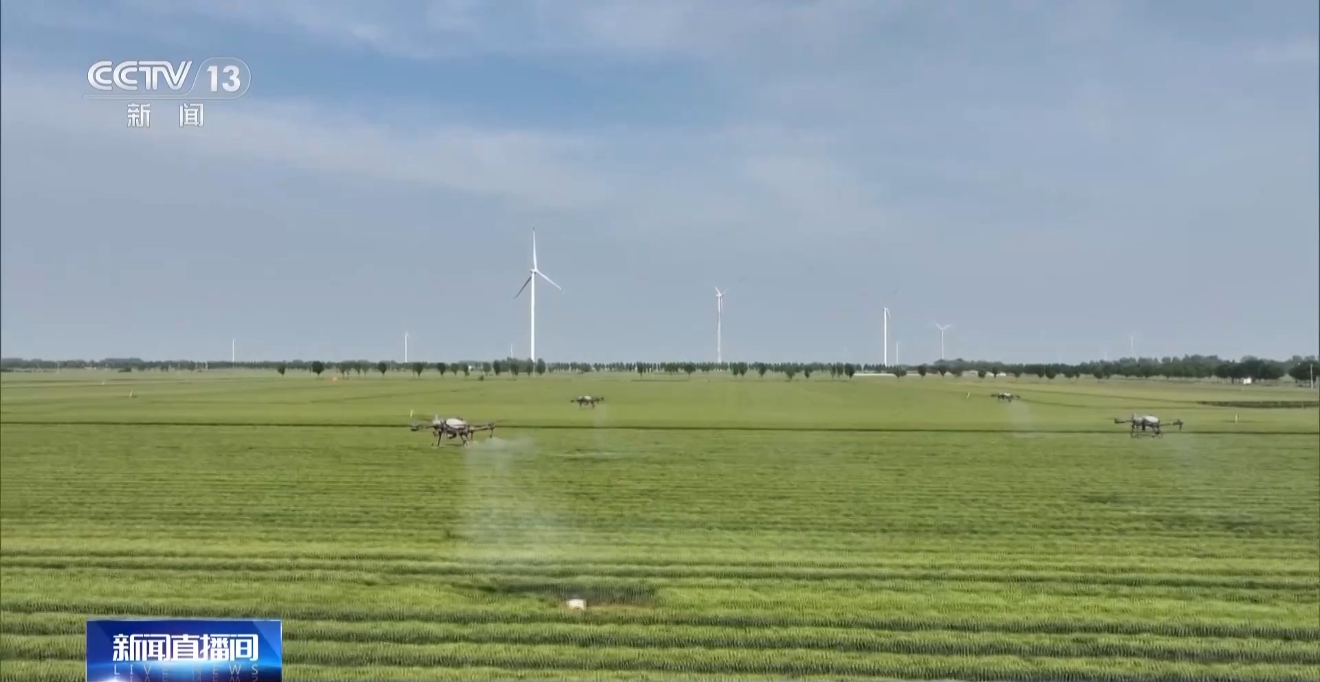 眼下正是小麥灌漿關(guān)鍵期,在山東省昌邑市柳疃鎮(zhèn)青阜農(nóng)業(yè)綜合體的一片高標(biāo)準(zhǔn)農(nóng)田里,幾架飛防無人機(jī)一字排開,白色水霧均勻噴灑在綠油油的麥田里。