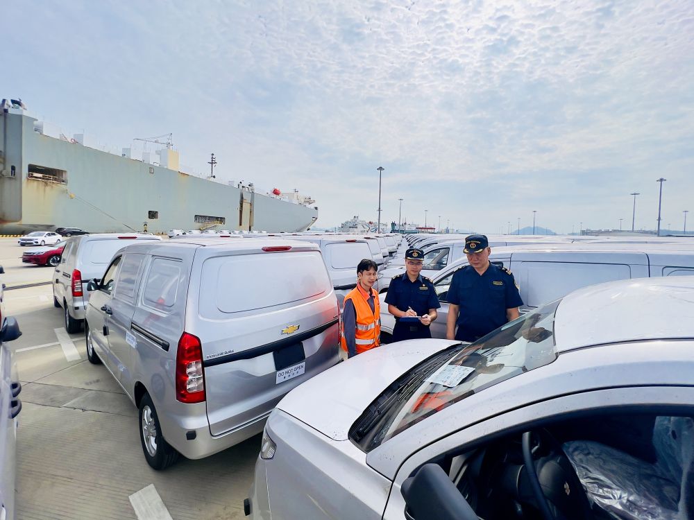 廣州海關(guān)所屬南沙海關(guān)關(guān)員對出口汽車進(jìn)行監(jiān)管。(受訪者供圖)