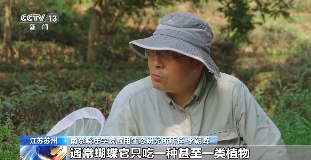 南京曉莊學(xué)院應(yīng)用生態(tài)研究所所長 李朝暉:通常蝴蝶只吃一種甚至一類植物,植物的存在與否,我們也能通過蝴蝶的存在與否或者多少直接能夠顯示。
