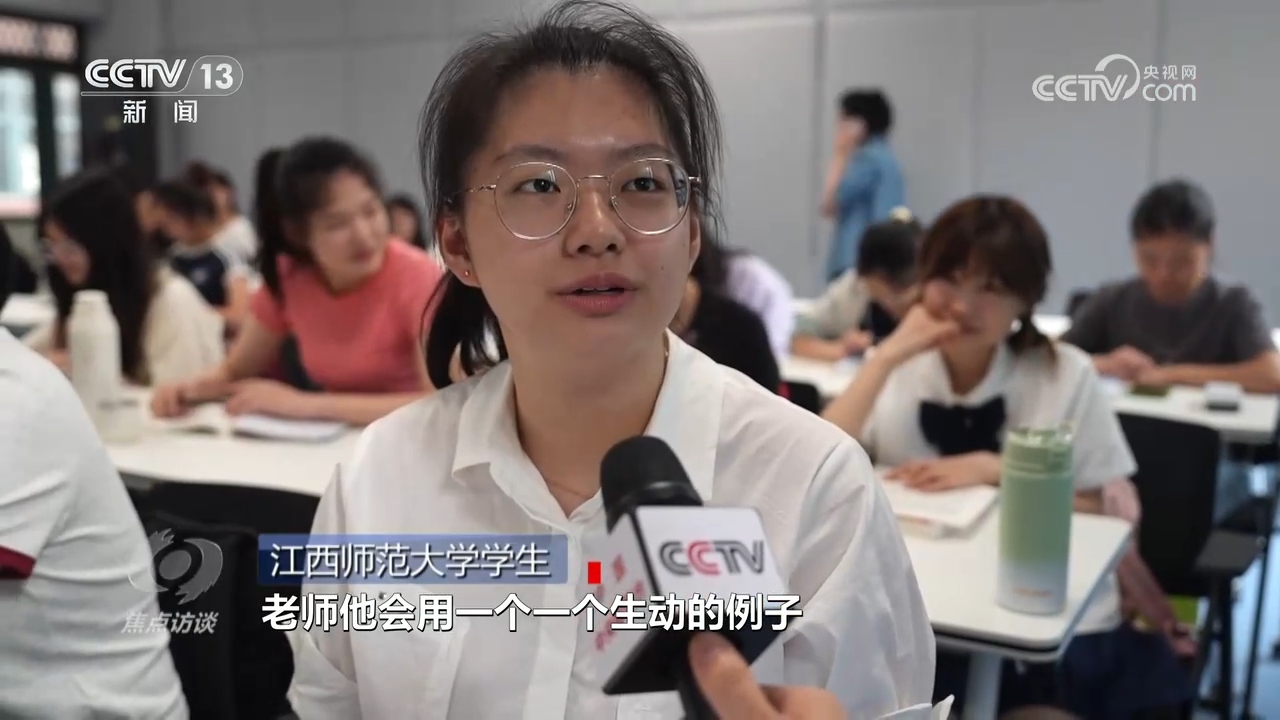 江西師范大學(xué)學(xué)生:“老師他會用一個生動的例子來表達他的觀點,然后也會用一些讓人感覺很熱血沸騰的,也有那種催人眼淚的故事,然后來激蕩我的心靈?!?/p>