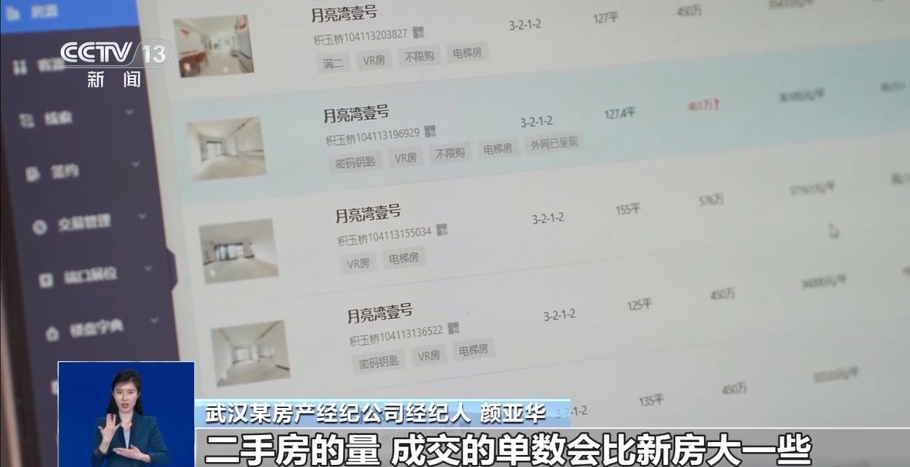 武漢某房產(chǎn)經(jīng)紀(jì)公司經(jīng)紀(jì)人 顏亞華:按成交量來說,二手房成交的單數(shù)會比新房大一些,因為二手房的單價可能會更低一點。