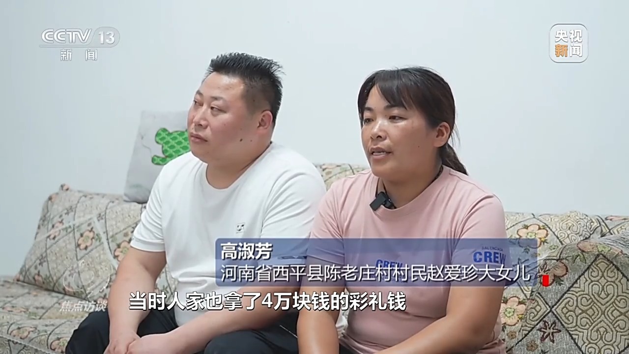河南省西平縣陳老莊村村民趙愛珍大女兒 高淑芳:當(dāng)時,人家也拿了4萬塊錢的彩禮,但是我們沒有要,我感覺“零彩禮”給我們家?guī)砹诵腋?。后來我們村成立了“紅娘協(xié)會”,我就積極加入了“紅娘協(xié)會”,去各個農(nóng)戶家宣傳低價彩禮的理念,讓更多的人受益。