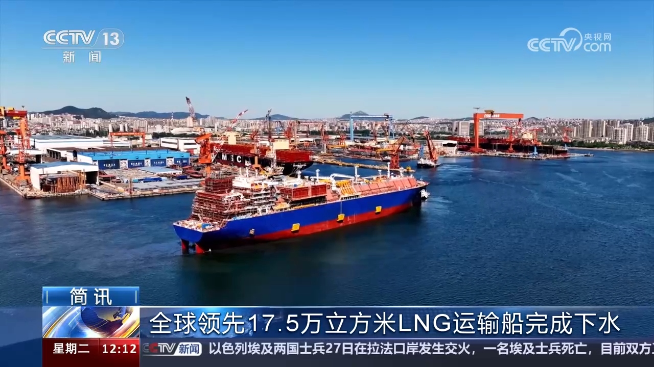 全球領(lǐng)先 17.5萬立方米LNG運(yùn)輸船完成下水