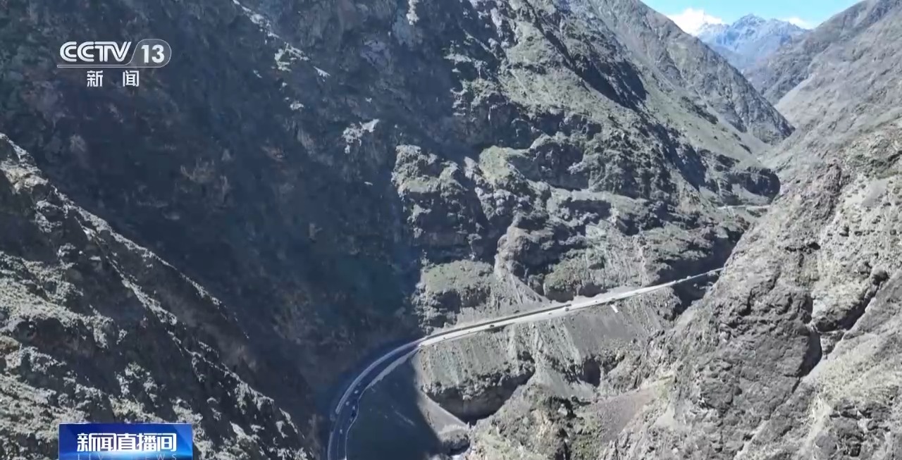 總臺(tái)記者 劉菲:這一路可以說(shuō)是崖壁陡峭、巖石突兀,這一側(cè)是垂直接近90度的山體,上下的高差達(dá)到200多米。在這條公路上行駛,可以感覺(jué)到翻過(guò)一座險(xiǎn)要山峰,另一側(cè)就邂逅了高山草甸的綠意。