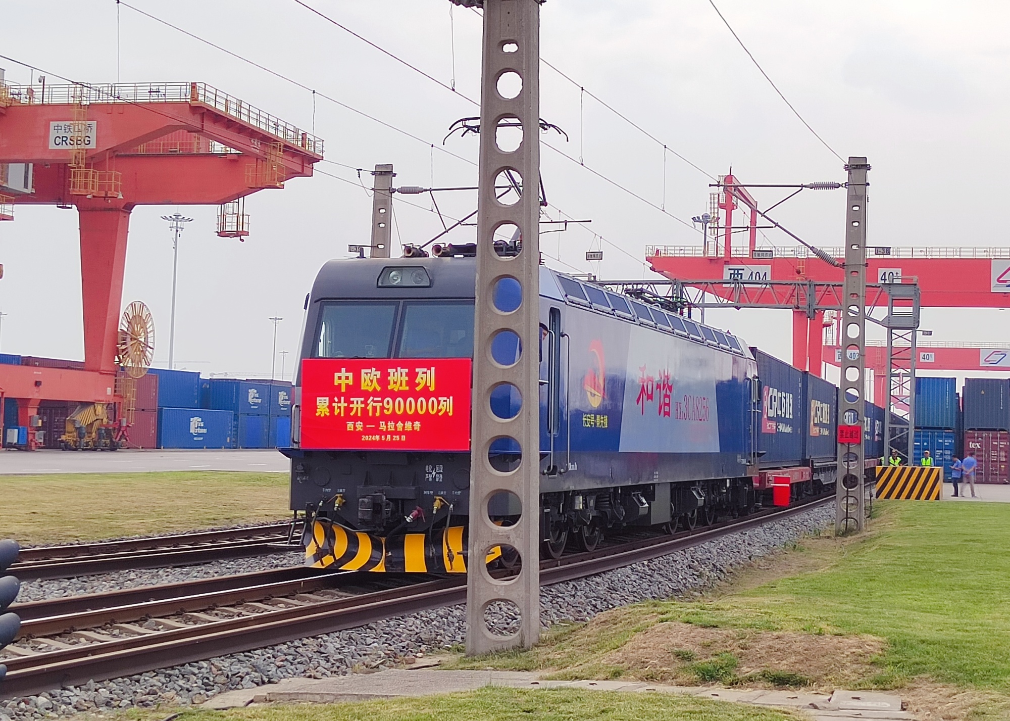中歐班列,晝夜馳騁在歐亞大陸上,聯(lián)通東西,暢通貿易,是“絲綢之路經濟帶”上的“鋼鐵駝隊”。今年5月24日,隨著X8157次中歐班列從西安國際港站發(fā)出,一路向西開去,中歐班列已經累計開行9萬列。從2013年開行80列到2016年開行1702列,再到2023年開行1.7萬列,十年來,中歐班列不斷跑出“加速度”,目前已通達歐洲25個國家223個城市,連接11個亞洲國家一百多個城市,服務網絡基本覆蓋歐亞全境,年運輸貨值由2016年80億美元增長到2023年的567億美元。