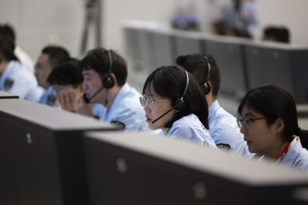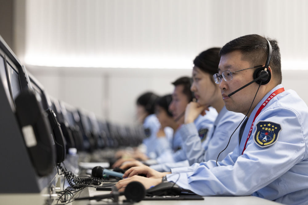 6月4日,在北京航天飛行控制中心,工作人員在監(jiān)測嫦娥六號上升器自月球背面起飛狀況。