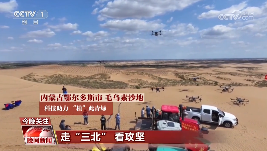 在內蒙古毛烏素沙地,無人機飛播、機器人栽種正當時,科技助力“植”此青綠。