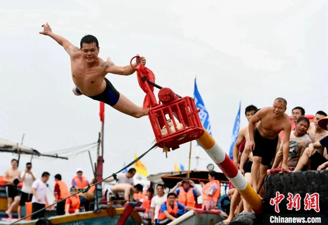 石獅蚶江海上潑水民俗。中新社記者 王東明 攝