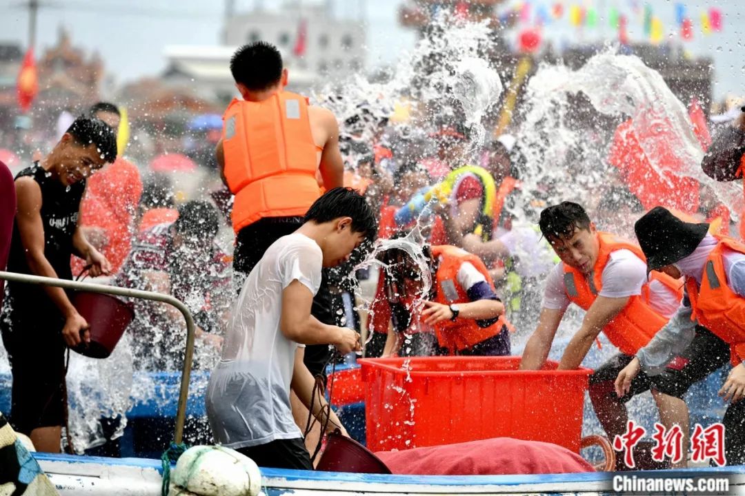 石獅蚶江海上潑水民俗活動已歷時近300年。中新社記者 王東明 攝
