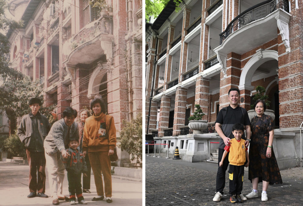 杜煜杰手拿一張老照片,攜母親和兒子重回廣州荔灣區(qū)沙面大街舊居樓前,30多年后再拍合影時(shí),回憶瞬間涌上心頭:“我清楚地記得當(dāng)時(shí)全家人要去廣州文化公園觀賞菊展,出發(fā)前,我們拍下了這張彩色合照。”