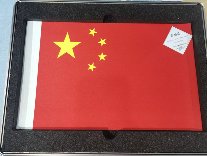 嫦娥六號(hào)月面國(guó)旗交付正樣件。(武漢紡織大學(xué)供圖)