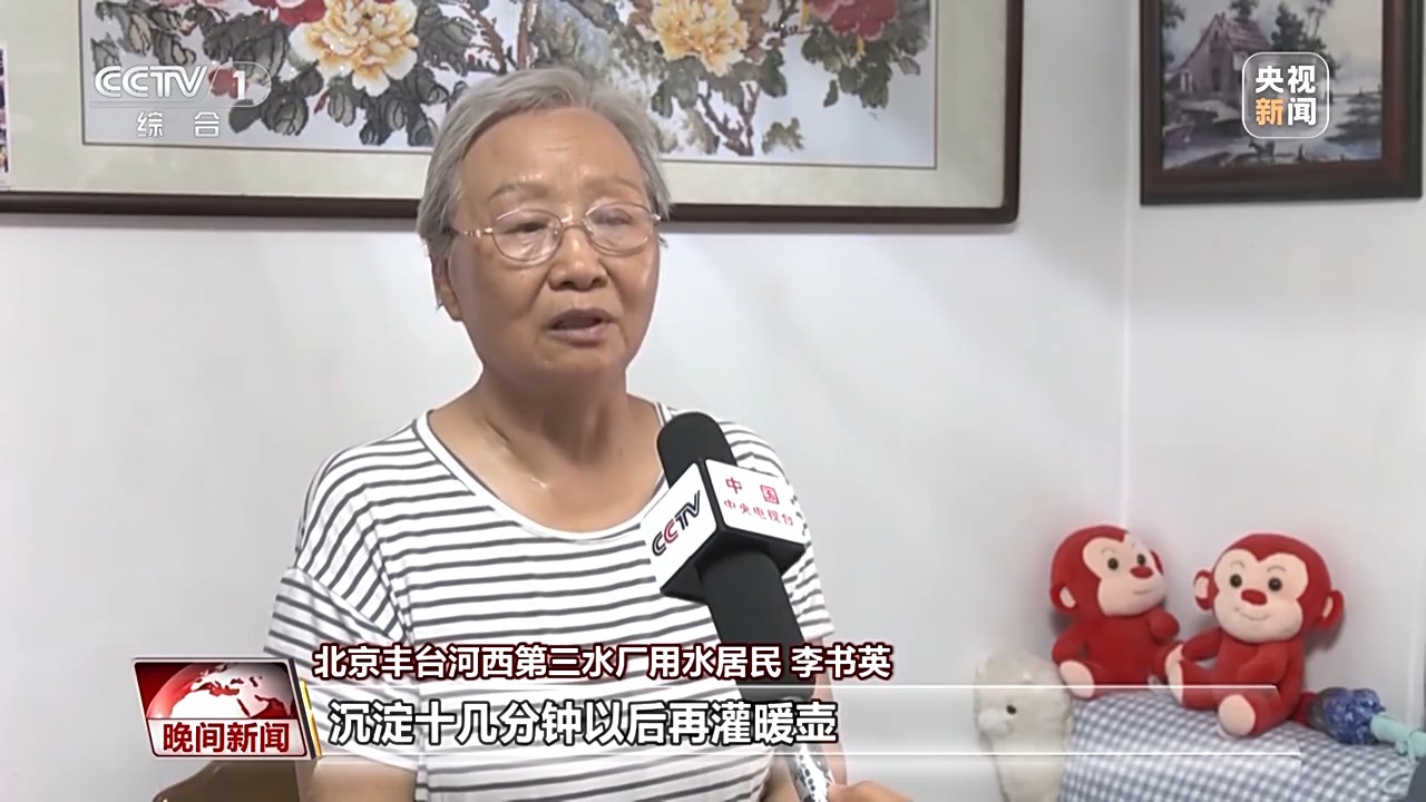 北京豐臺河西第三水廠用水居民 李書英:我們原來用水壺?zé)_水以后,還得沉淀,沉淀十幾分鐘以后再灌暖壺,但是暖壺里水堿也特別多?,F(xiàn)在通過南水北調(diào)水質(zhì)比之前好多了,水堿比原來大大減少。