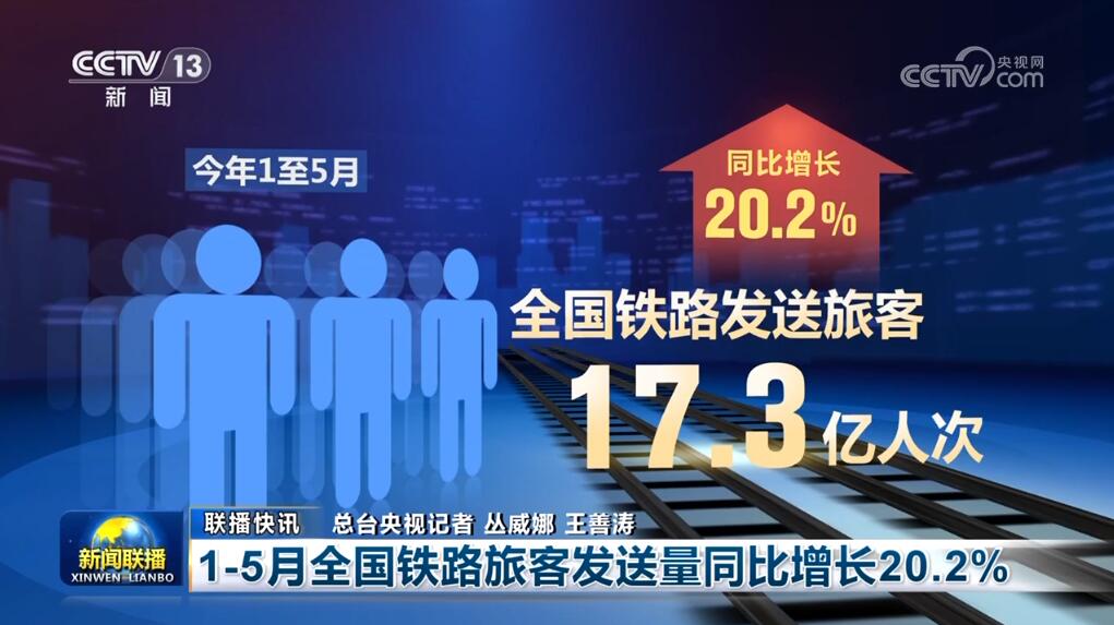 1—5月全國鐵路旅客發(fā)送量同比增長20.2%