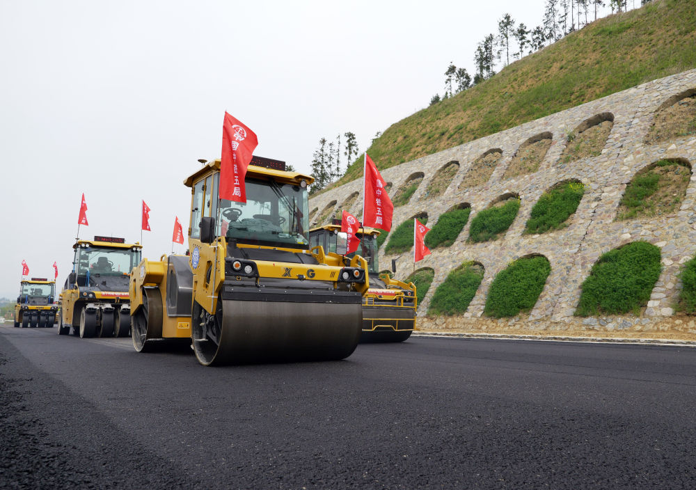 2024年4月11日,在河南省新縣,無(wú)人駕駛壓路機(jī)在由中鐵五局承建的沿大別山高速公路雞公山至商城段進(jìn)行施工作業(yè)。 新華社記者 李嘉南 攝