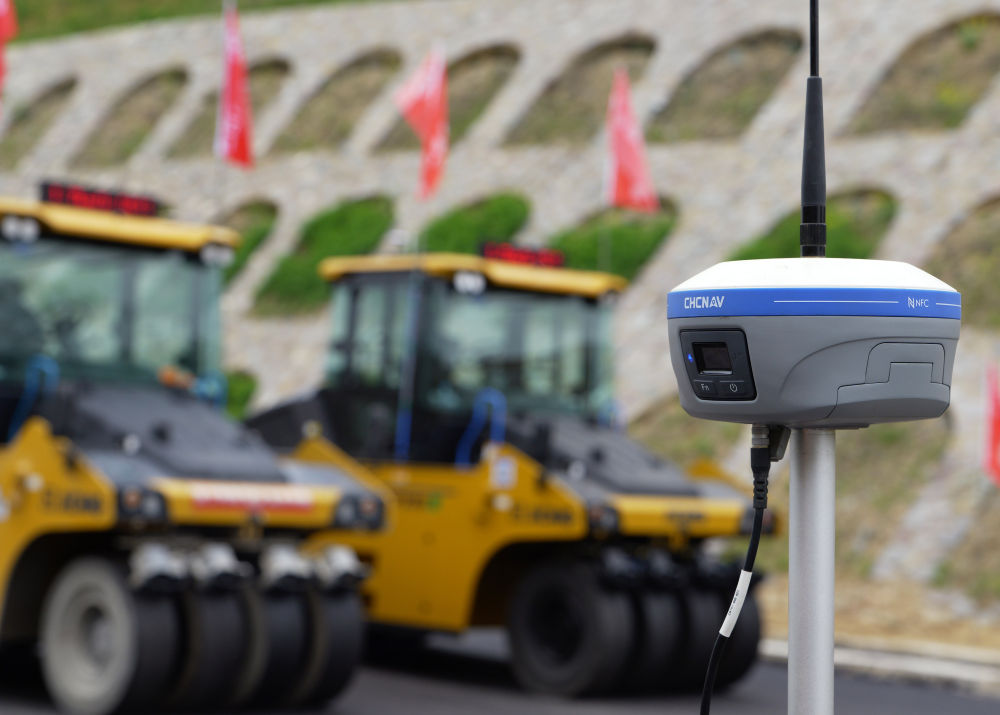 2024年4月11日,在河南新縣境內(nèi)的沿大別山高速公路雞公山至商城段,基準(zhǔn)站在為作業(yè)中的無(wú)人駕駛壓路機(jī)提供定位坐標(biāo)。 新華社記者 李嘉南 攝