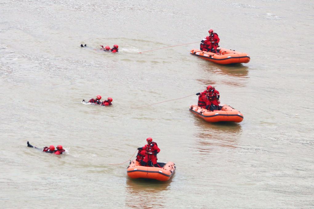 6月11日,梧州市消防救援支隊(duì)水域救援專業(yè)隊(duì)在廣西桂江流域進(jìn)行救援訓(xùn)練。(雷開(kāi)偉 攝)