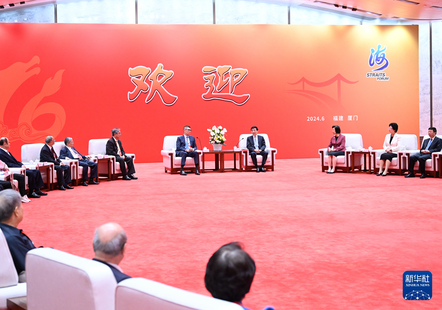 6月15日,第十六屆海峽論壇大會(huì)在廈門(mén)舉行。中共中央政治局常委、全國(guó)政協(xié)主席王滬寧出席并致辭。這是大會(huì)開(kāi)始前,王滬寧會(huì)見(jiàn)參加論壇的臺(tái)灣嘉賓代表。新華社記者 申宏 攝