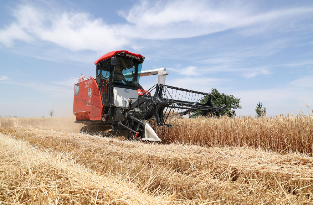 2024年5月27日,安徽省蒙城縣樂土鎮(zhèn)農(nóng)民駕駛農(nóng)機搶收小麥。新華社發(fā)(胡衛(wèi)國攝)