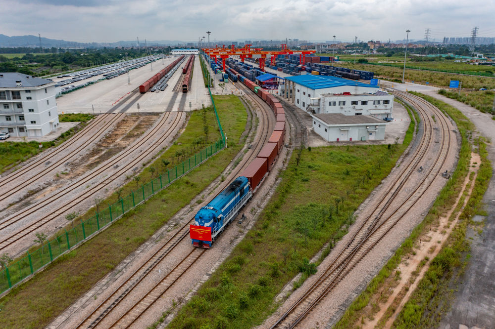 6月19日,在廣州國(guó)際港,粵港澳大灣區(qū)首列全程時(shí)刻表中歐班列即將發(fā)車(chē)。新華社發(fā)