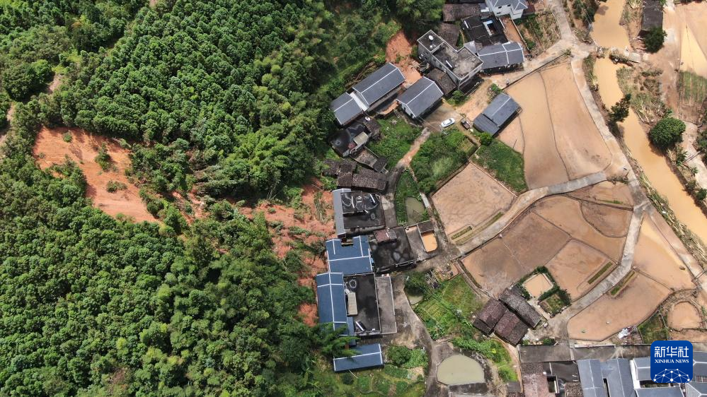 災(zāi)后的廣東省梅州市平遠(yuǎn)縣泗水鎮(zhèn)大新村(6月19日攝,無(wú)人機(jī)照片)。新華社記者 盧漢欣 攝