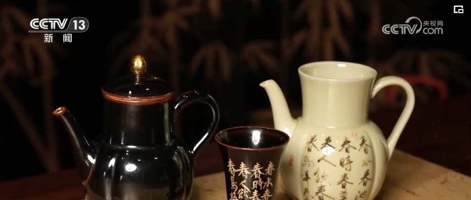 劉嘉豪是劉坤庭的兒子,這套出自他手的作品,器型、釉色的創(chuàng)意都源自“黑石號(hào)”的出水陶瓷,作品上面的詩(shī)句也是復(fù)刻而來。