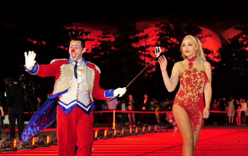 2015年10月7日,在第十五屆中國吳橋國際雜技藝術節(jié)閉幕式上,來自委內瑞拉的表演者走紅毯。