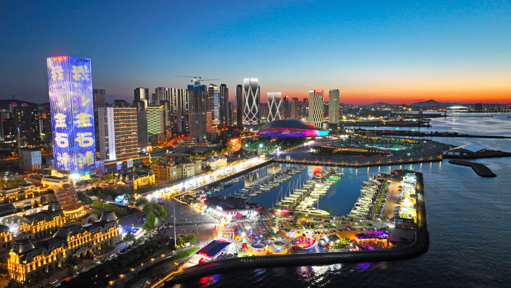 ↑夏季達沃斯主會場所在的大連東港商務區(qū)。
