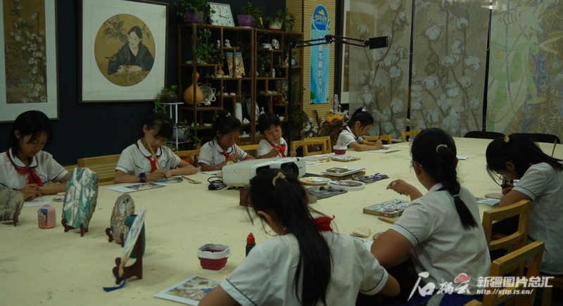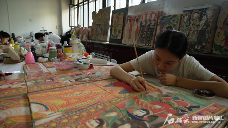 烏魯木齊市第八十三中學學生在龜茲壁畫工作坊臨摹作品。石榴云/新疆日報記者 宋海波攝