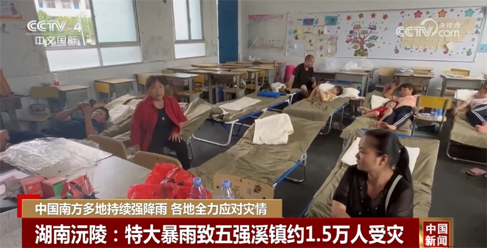 從21日開始,湖南沅陵五強(qiáng)溪鎮(zhèn)出現(xiàn)特大暴雨,全鎮(zhèn)24小時(shí)累計(jì)降雨接近400毫米。其中6小時(shí)、12小時(shí)、24小時(shí)雨量均已突破歷史極值。暴雨引發(fā)了山洪,據(jù)初步統(tǒng)計(jì),五強(qiáng)溪鎮(zhèn)共有約1.5萬人受災(zāi)。目前,已轉(zhuǎn)移安置4000多人,設(shè)置安置點(diǎn)21個(gè)。22日夜間洪水退去后,當(dāng)?shù)厍逵侔仓霉ぷ鞒掷m(xù)進(jìn)行中。