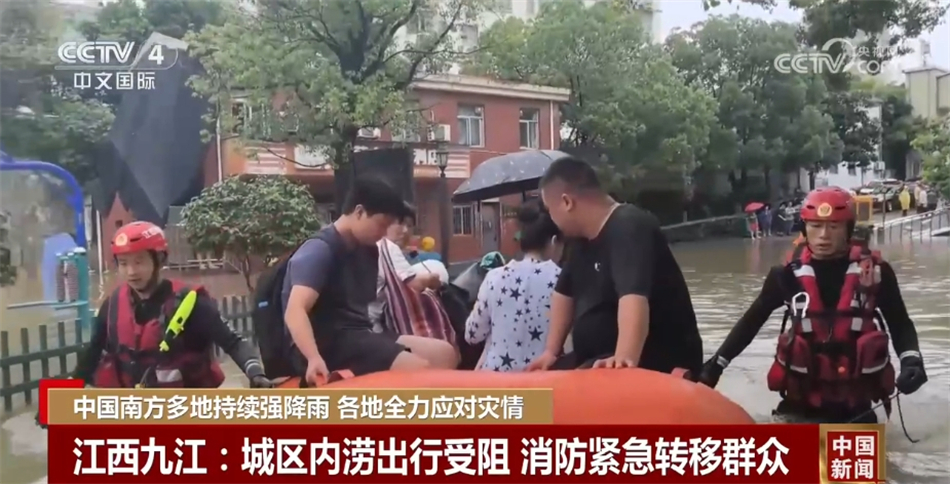 23日,江西九江遭遇強(qiáng)降雨,城區(qū)出現(xiàn)積水內(nèi)澇,部分路段積水深超一米,居民出行受到影響。當(dāng)?shù)叵谰仍藛T利用橡皮艇幫助群眾轉(zhuǎn)移,同時(shí),消防救援人員使用浮艇泵,連接水帶,開展排水作業(yè)。
