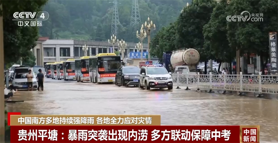 受強(qiáng)降雨的影響,23日,貴州平塘縣低洼路段出現(xiàn)內(nèi)澇。恰逢當(dāng)?shù)刂锌甲詈笠惶?,為保障學(xué)生順利參考,平塘縣第一時(shí)間啟動(dòng)應(yīng)急預(yù)案,引導(dǎo)接送考生車輛安全行駛。