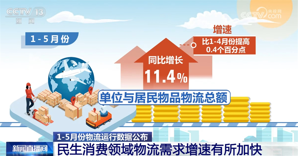 中國物流信息中心主任劉宇航表示,從1—5月我國社會物流運(yùn)行情況來看,總體還是保持穩(wěn)中向好。從消費(fèi)的情況來看,5月份以來整個消費(fèi)活力比較強(qiáng),消費(fèi)增速比較明顯。