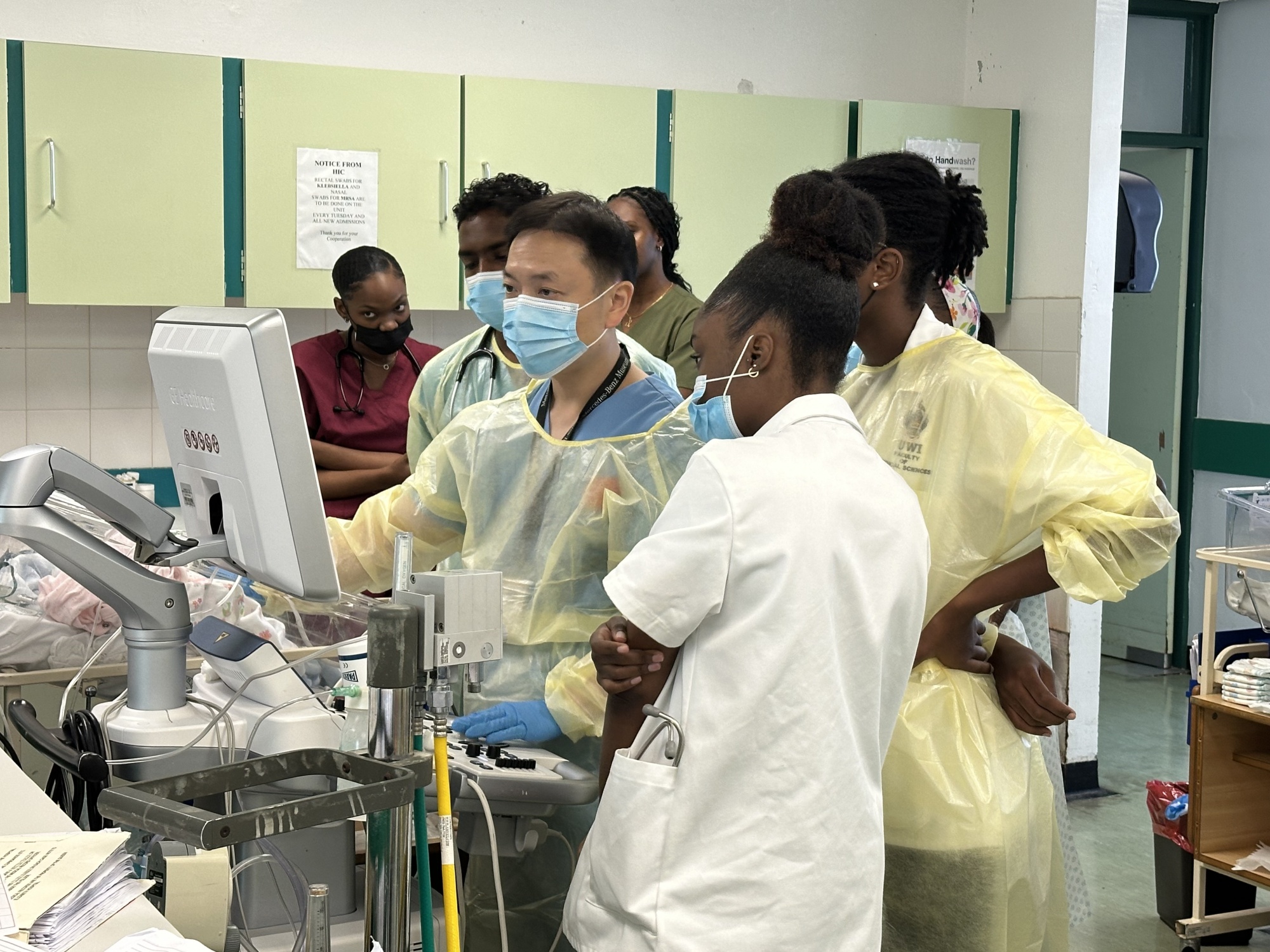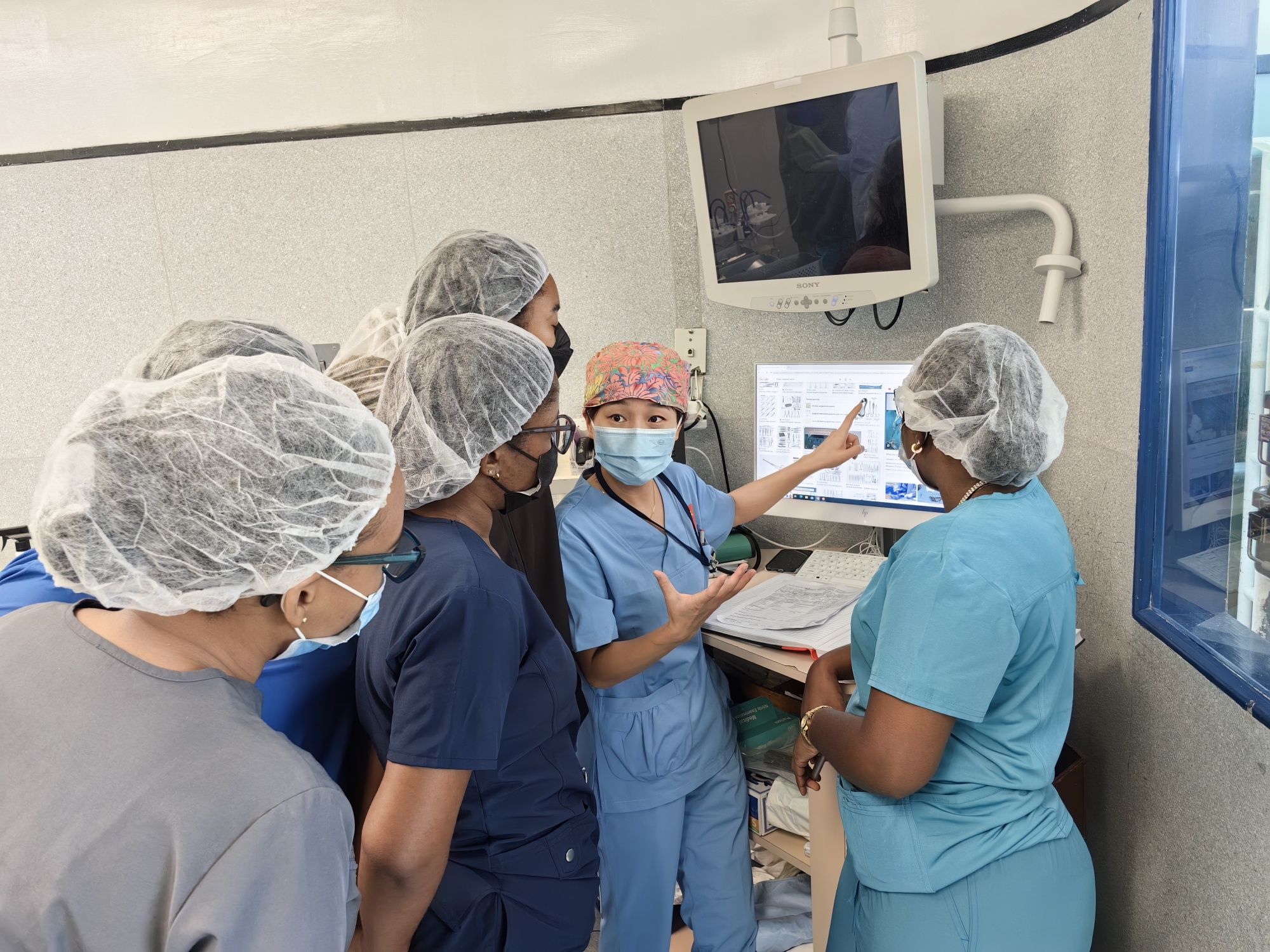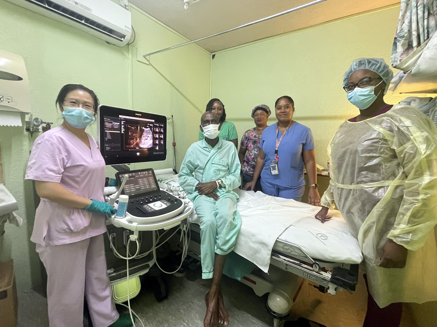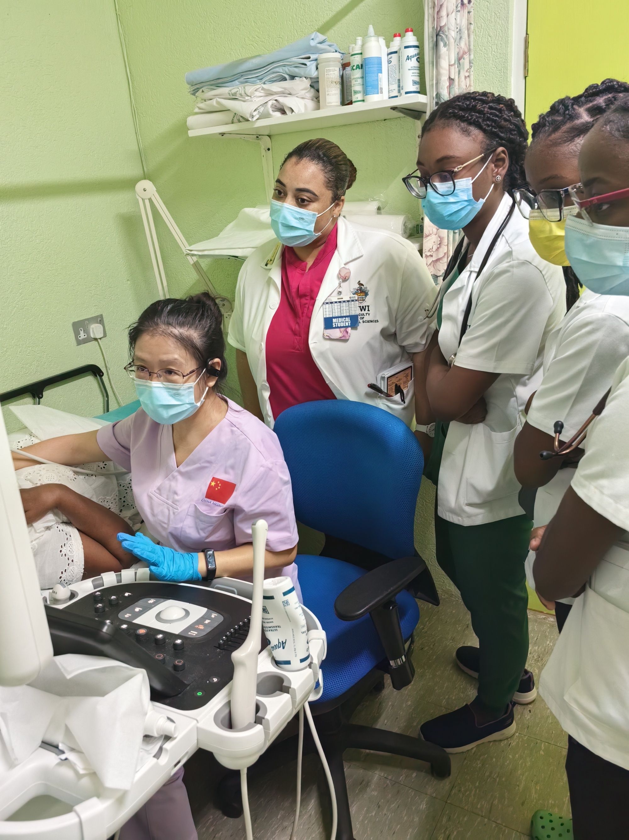 劉麗萍(左一)開展巴巴多斯第一例超聲造影技術(shù)