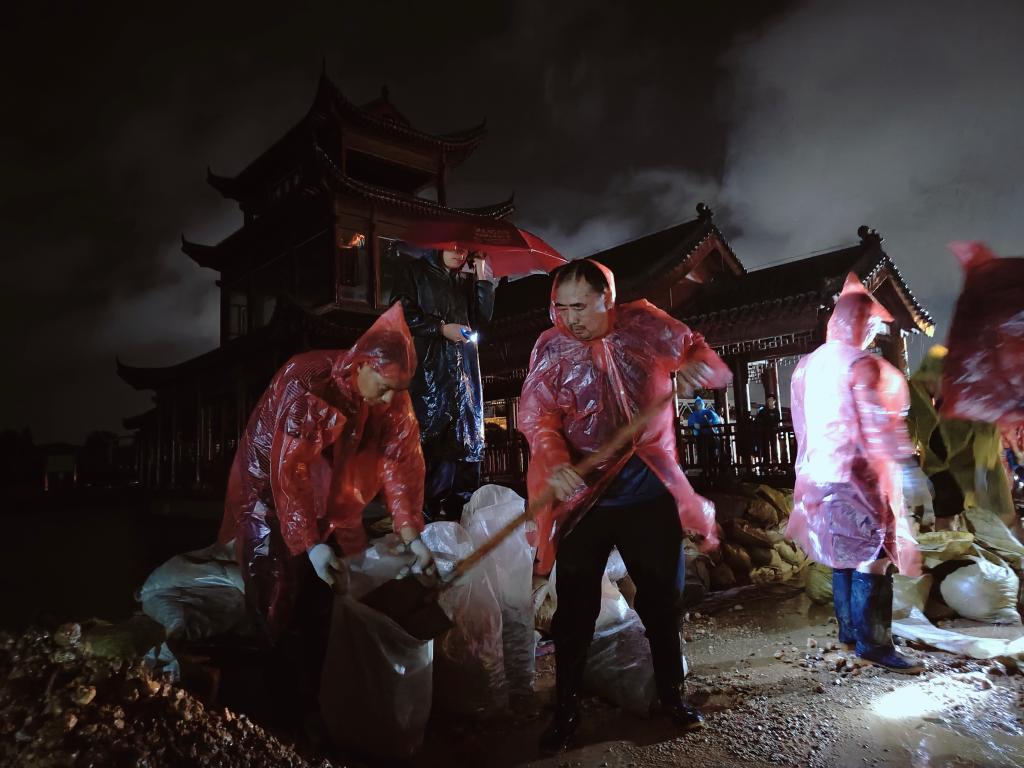 這是7月1日22時(shí)在汨羅市湖溪垸楊泗廟堤段拍攝的搶筑子堤場(chǎng)景。(汨羅市融媒體中心供圖)