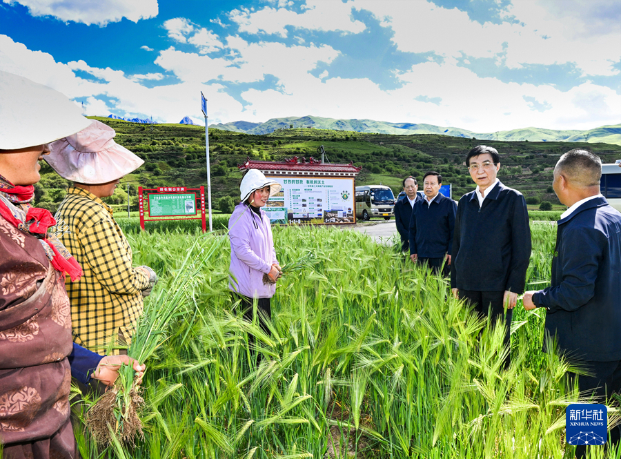 7月1日至3日,中共中央政治局常委、全國政協(xié)主席王滬寧在四川甘孜、阿壩調研。這是7月1日王滬寧在甘孜縣了解青稞生產(chǎn)情況。新華社記者 饒愛民 攝