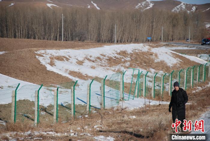 資料圖。圖為2017年,包金泉在吐列毛杜鎮(zhèn)賽音化嘎查境內,巡查金界壕圍封網(wǎng)圍欄破壞情況。 科右中旗文物考古研究所供圖