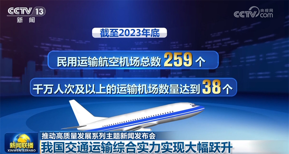 五年來,客貨運(yùn)輸不斷發(fā)展,群眾出行更加舒適便捷,貨物運(yùn)輸更加順暢高效。截至2023年底,我國鐵路營業(yè)里程15.9萬公里,其中高鐵營業(yè)里程4.5萬公里;全國公路里程543.68萬公里,其中高速公路里程18.36萬公里;民用運(yùn)輸航空機(jī)場總數(shù)259個(gè),千萬人次及以上的運(yùn)輸機(jī)場數(shù)量達(dá)到38個(gè)。