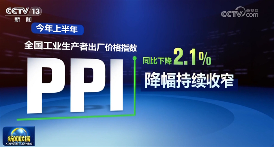 上半年,全國工業(yè)生產(chǎn)者出廠價(jià)格指數(shù)PPI降幅持續(xù)收窄,同比下降2.1%。