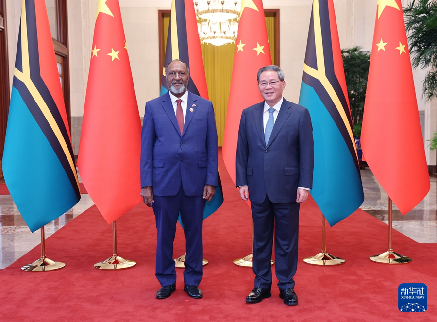 國務(wù)院總理李強(qiáng)12日上午在北京人民大會堂同來華進(jìn)行正式訪問的瓦努阿圖總理薩爾維舉行會談。